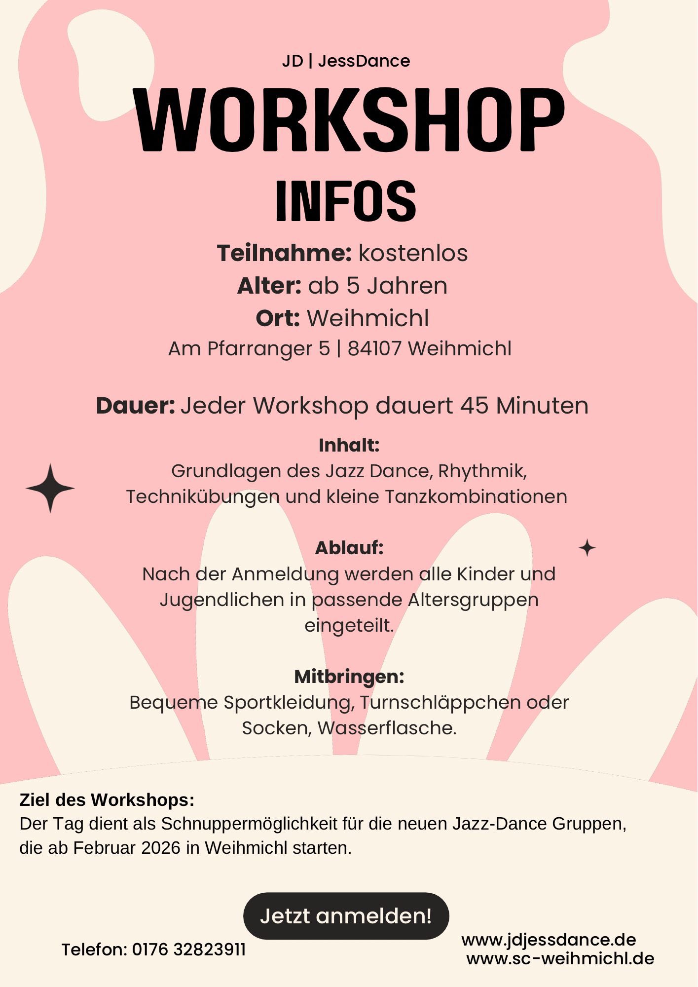 Ab 4. Februar starten wir mit den wöchentlich stattfindenden Jazztanzstunden.