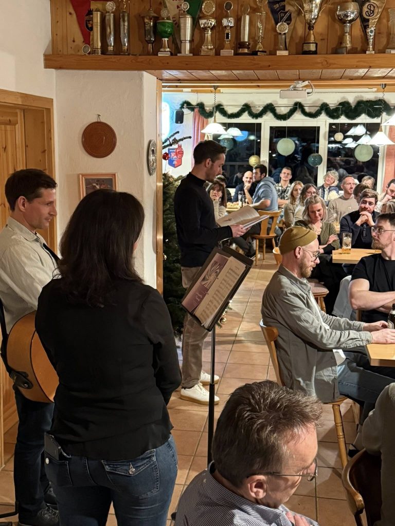 Eröffnet wurde der Abend mit einer herzlichen Begrüßung durch den 1. Vorstand Johannes Popp. In seinen Worten bedankte er sich bei allen Helferinnen und Helfern für ihren unermüdlichen Einsatz und betonte die große Bedeutung des Zusammenhalts innerhalb des Vereins. Im Anschluss folgte ein besinnlicher Teil, der den Abend besonders stimmungsvoll machte. Die Familie Nitzl sorgte mit ihrer musikalischen Umrahmung für weihnachtliche Klänge, während Rudi Maier und Hiltrud Burian mit ihren Geschichten zum Nachdenken, Schmunzeln und Innehalten einlud.